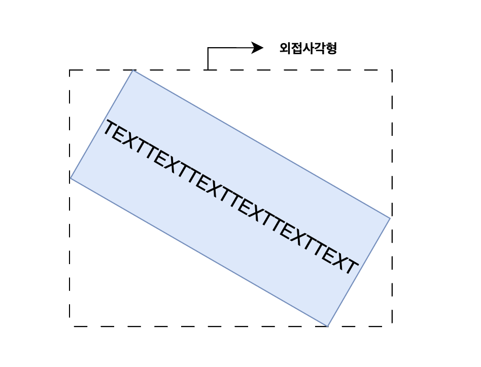 - 회전된 텍스트 요소의 외접 사각형 좌표, 너비, 높이